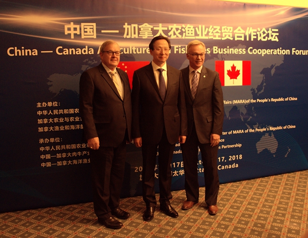 10月17日,由中國農(nóng)業(yè)農(nóng)村部、加拿大農(nóng)業(yè)與農(nóng)業(yè)食品部、加拿大漁業(yè)和海洋部共同舉辦的首屆中國—加拿大農(nóng)漁業(yè)經(jīng)貿(mào)合作論壇在加拿大渥太華成功舉辦。中國農(nóng)業(yè)農(nóng)村部部長韓長賦、加拿大農(nóng)業(yè)與農(nóng)業(yè)食品部部長麥考利和加拿大漁業(yè)和海洋部議會秘書凱西出席論壇開幕式并致辭。
