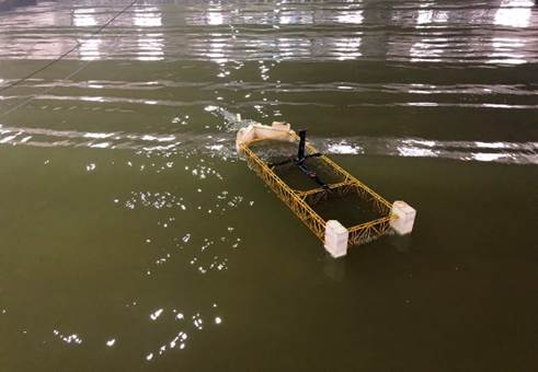 船型網(wǎng)箱水動(dòng)力試驗(yàn):為了解和掌握深水網(wǎng)箱在各種海況條件下的水動(dòng)力特性,獲取臺(tái)風(fēng)等級(jí)海況深水網(wǎng)箱系統(tǒng)主要部件的力學(xué)相關(guān)數(shù)據(jù),為網(wǎng)箱選址、設(shè)計(jì)、選型、安裝提供關(guān)鍵數(shù)據(jù)支撐。進(jìn)行桁架鋼結(jié)構(gòu)船型網(wǎng)箱物理模型試驗(yàn)研究。試驗(yàn)分別測(cè)定了以下內(nèi)容:分別在規(guī)則波、不規(guī)則波、純流、規(guī)則波和水流聯(lián)合作用、不規(guī)則波和水流聯(lián)合作用的條件下,測(cè)定網(wǎng)箱的運(yùn)動(dòng)幅值、波浪力及相關(guān)水動(dòng)力系數(shù)。